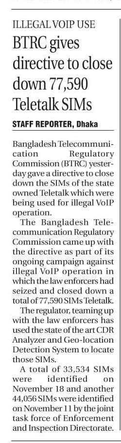 BTRC gives directive to close down 77,590 Teletalk SIMs.